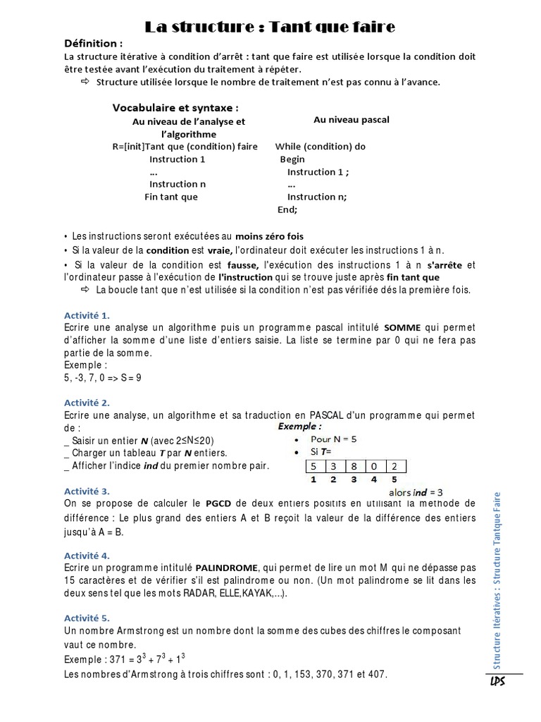 Algorithme qui demande à l'utilisateur un nombre ensuite s'il est nombre d'armstrong ou non exercice d'évaluation des connaissances sur les structures.
